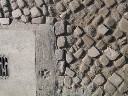 這個城市因著不同的居民亦留下不同的痕跡。除了梅花腳印,狗狗們似乎已習慣性地每天在紐肯區的石子路面留下一坨坨短暫存在的痕跡!