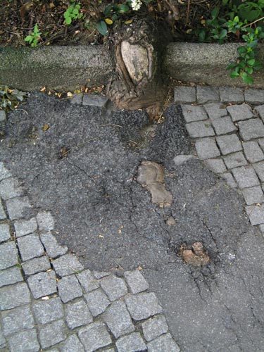 樹根有時候會破壞路面甚至克服路面結構長出來。