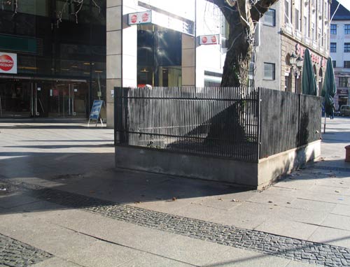 ausgezogen ist, scheint das Gitter um den Baum überflüssig geworden zu sein, denn diejenigen, die einst Bier trinkend auf der Mauer gesessen haben, versorgen und betrinken sich nun woanders. (*Lidl: Billig-Supermarkt) |