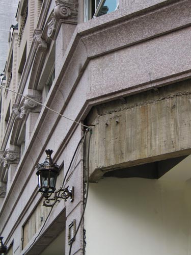 Die noch fehlende Ecke zeigt, wie dünn die europäisch anmutende Dekorationsschicht nur über dem Beton liegt