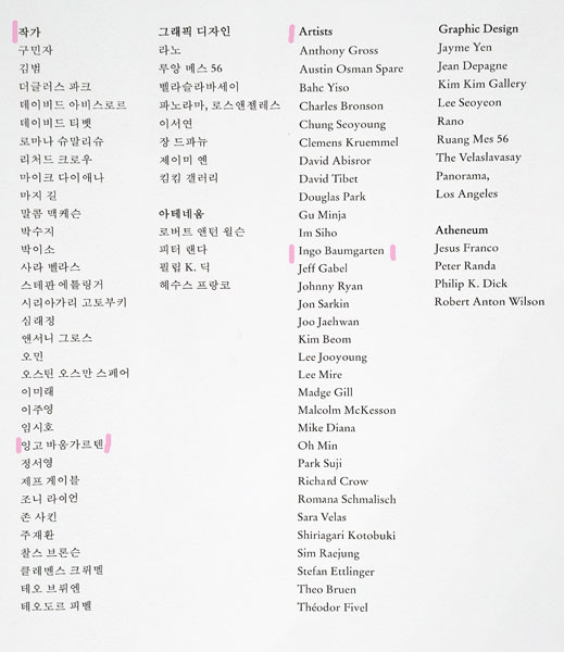 Artists list of "Trauma bragging" curated by Kim Kim Gallery, as part of the show "Where small things begin", Gyeongi Museum of Modern Art, Korea.